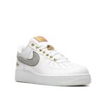 A special Air Force 1 Low celebrating New Orleans culture. It features a clean white patent leather base with shimmering silver Swooshes, metallic gold accents (including eyelets, lace dubraes, and heel details), and pops of university red for a bold, vibrant look. The “NOLA” branding on the heel pays tribute to the city’s spirit, while the classic Air cushioning and durable build keep the timeless comfort and style of the Air Force