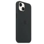 A sleek, protective silicone case designed to fit iPhone models 13 through 17, featuring a midnight (deep dark) color that gives a stylish, minimalist look. The smooth silicone exterior offers a soft touch grip, comfortable feel, and everyday protection against bumps and scratches while maintaining easy access to buttons and ports.